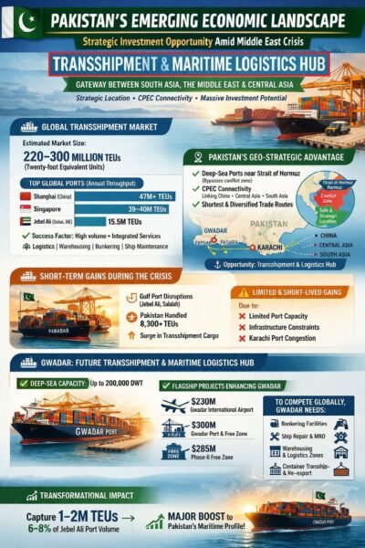 Infographics Pakistan as Transhipment and Maritime Logistics Hub 0 Continue Reading Previous Pakistan as a Regional Aviation HubNext Pakistan Enhanced Economic Landscape More Stories Infographics Real Estate and Capital Repatriation – Pakistan Untapped Economic Oppurtunity 0 Infographics Pakistan Enhanced Economic Landscape 0 Infographics Pakistan as a Regional Aviation Hub 0 Leave a Reply Cancel replyYour email address will not be published. Required fields are marked *Comment * Name * Email * Website Save my name, email, and website in this browser for the next time I comment.